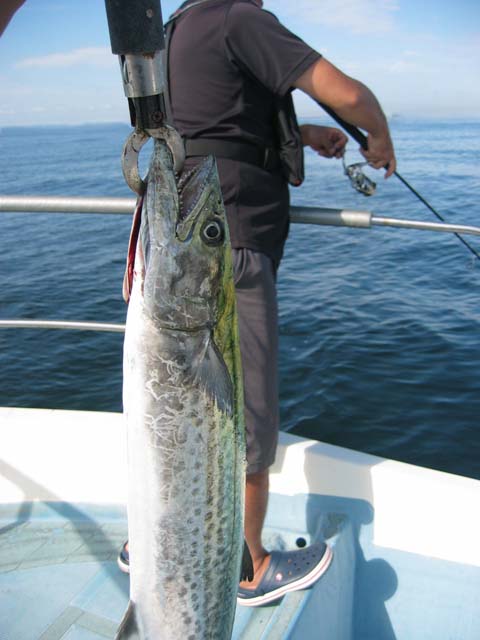 ちなみに、サワラをキャッチしたのはヤマちゃんですが、船の近くでハネが出ているので写真を撮影する暇がない。